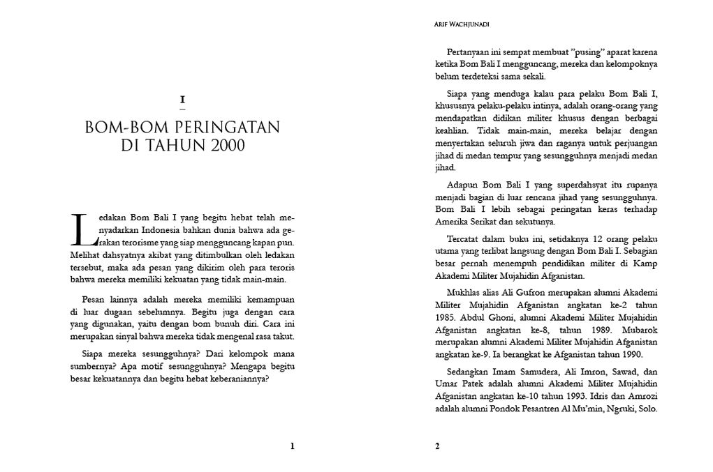 Serentetan bom berskala besar yang pernah mengguncang Indonesia dan yang paling menyita perhatian adalah ledakan spektakuler Bom Bali I, 12 Oktober 2002. Ledakan ini tidak hanya mencoreng citra Indonesia di mata dunia, melainkan juga membuat Polri shock, bahkan Kapolri Jenderal Polisi Da’i Bachtiar ’’nyaris’’ pasrah menghadapinya.